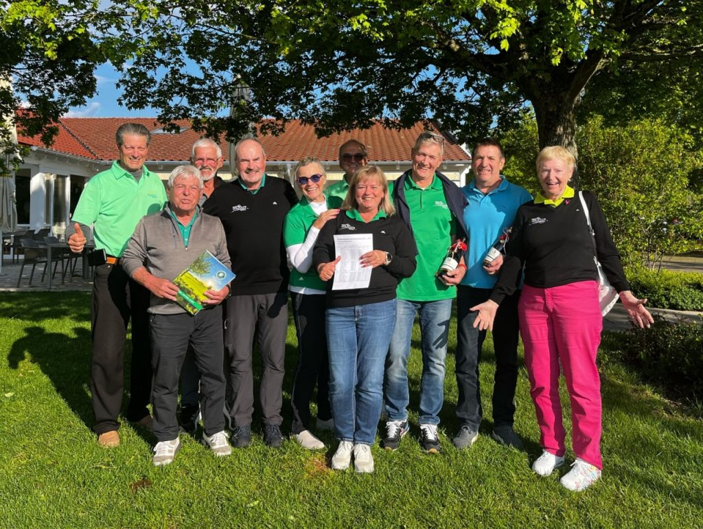 Erfolgreiches Spiel unserer Mannschaft beim Golfclub Gröbernhof. Obwohl man nur ganz knapp hinter den Erstplatzierten (153 Punkte) den 3. Platz mit 150 Punkte belegte, konnte man in der Gesamtwertung den 1. Platz verteidigen. Ja sogar noch auf 9 Punkte Vorsprung ausbauen. Sigi und Hubert konnten in der Gruppe Netto B den 1. Platz belegen und hatten gleichzeitig mit 44 Punkten das beste Netto Tagesergebnis.