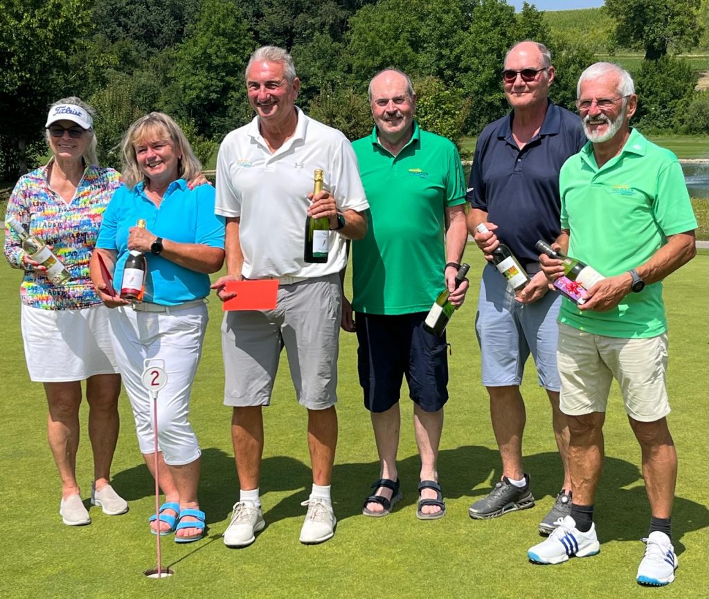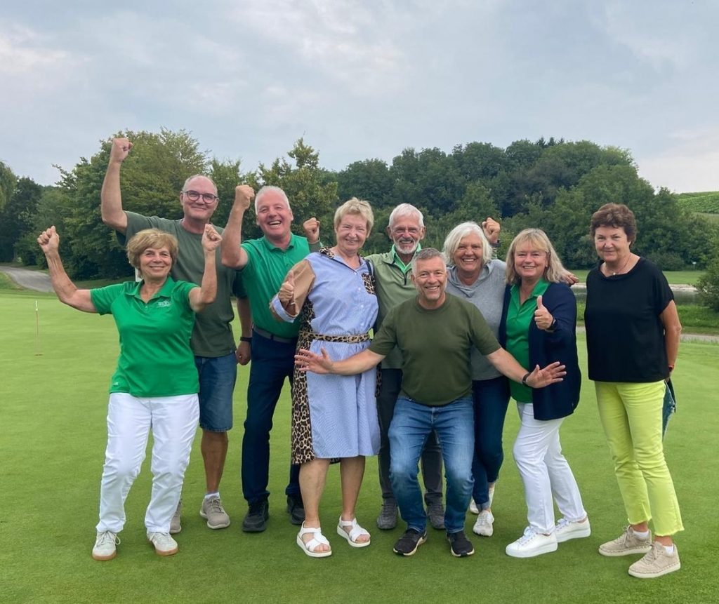 Strahlende Gesichter unserer erfolgreichen Siegermannschaft des des GC Breisgau beim Heimspiel am 21. August 2025. Mit 173 Punkten erspielte sich das Team den 1. Platz. Jürgen Haberkorn und Gaby Schuster erzielten mit 49 Nettopunkten das bislang beste Ergebnis der Saison.