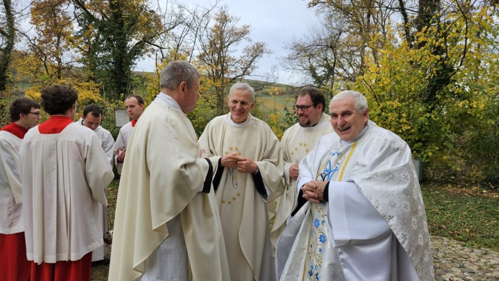 (v.r.n.l.) Pater Bernard (FMND), Pfarrer Schätzle, Pater Antoine