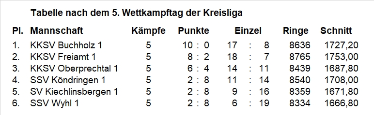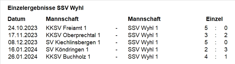 Der SSV Wyhl hat die Serie beendet. Zum Schluss gab es nochmals eine 4 : 1 Niederlage in Buchholz. Die Mannschaft des Sportschützenvereins Wyhl schließt die Saison als Tabellenletter ab.