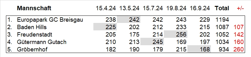 Der Europa-Park Golfclub Breisgau spielte eine Superrunde und konnte sowohl die Brutto- als auch die Nettowertung 2024 gewinnen. Beide Pokale gingen an der GC Breisgau, die es im nächsten Jahr zu verteidigen gilt.